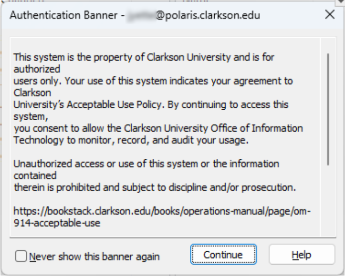 Note: At your discretion, you can check the box next to "Never show this banner again." |