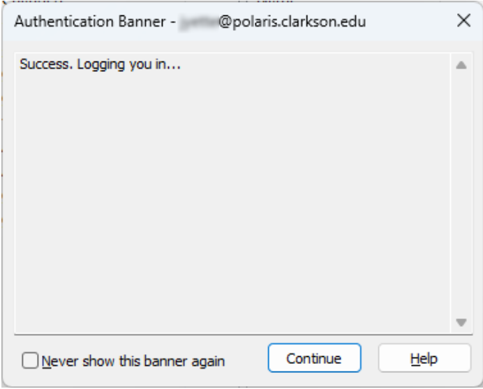 Once you have successfully negotiated your DUO two-factor authentication, you should see the "Success. Logging you in ..." message.