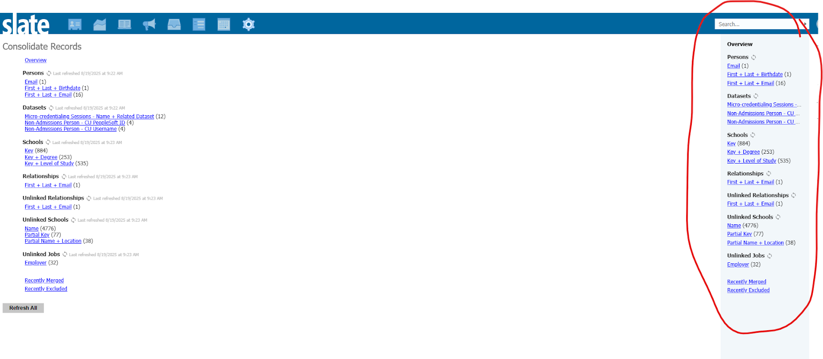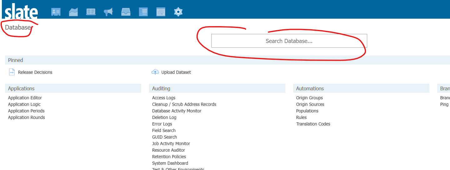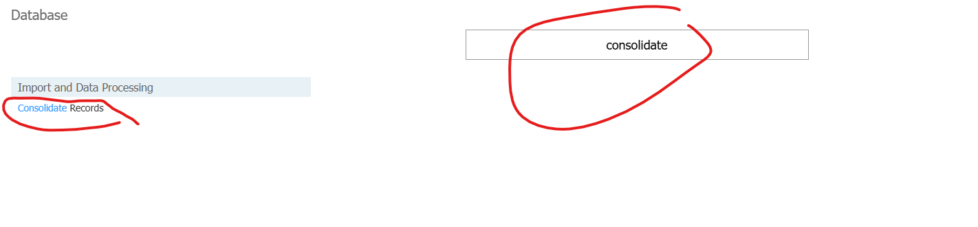- Once you click on Database the next screen has a search box…type in Consolidate and you’ll see consolidate records pop up