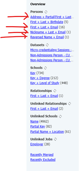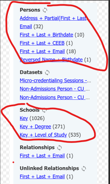 **When consolidating schools it looks a little different. So when consolidating schools/keys is a little different than consolidating persons. If there is a bachelor's degree and master's from the same school we are NOT merging? If they are different schools we are excluding.