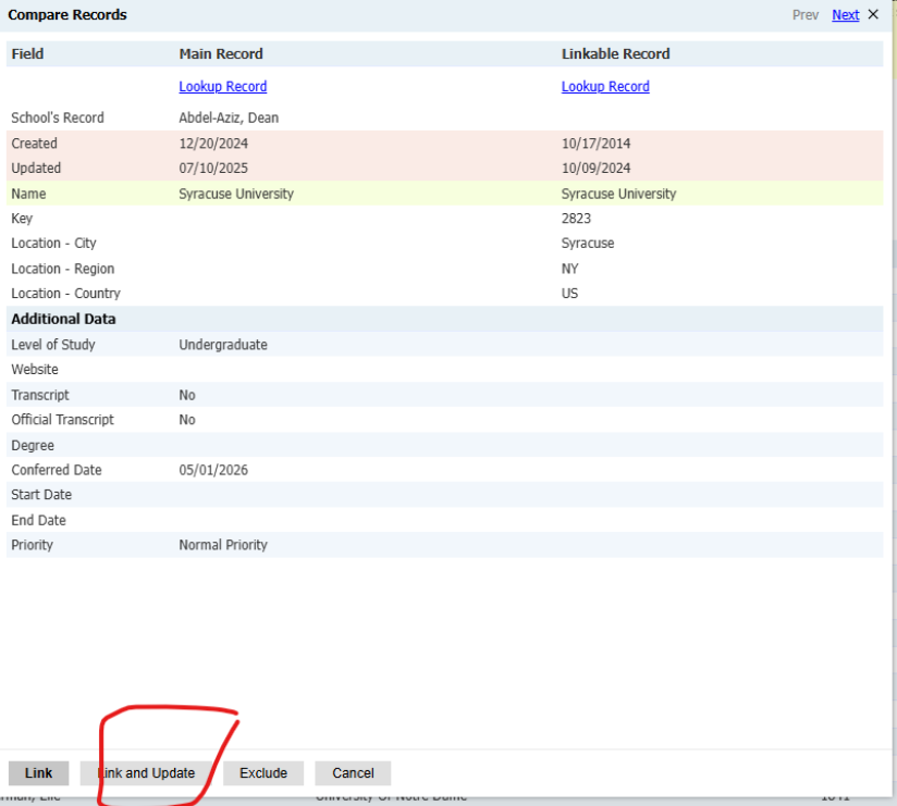 For Unlinked schools...if they are the same school…link and update...correct? YES