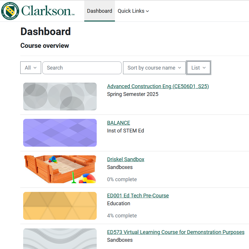 - You can send an email to helpdesk@clarkson.edu and ask for sandbox course, a place where you can try out the features of the Moodle LMS or begin to create a course.