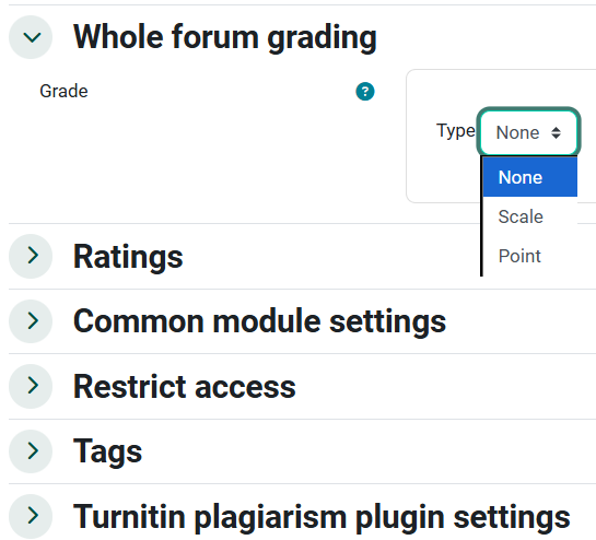 - Choose one or the other type of grading for each forum, as using both methods in one forum will create duplicate entries in the gradebook.