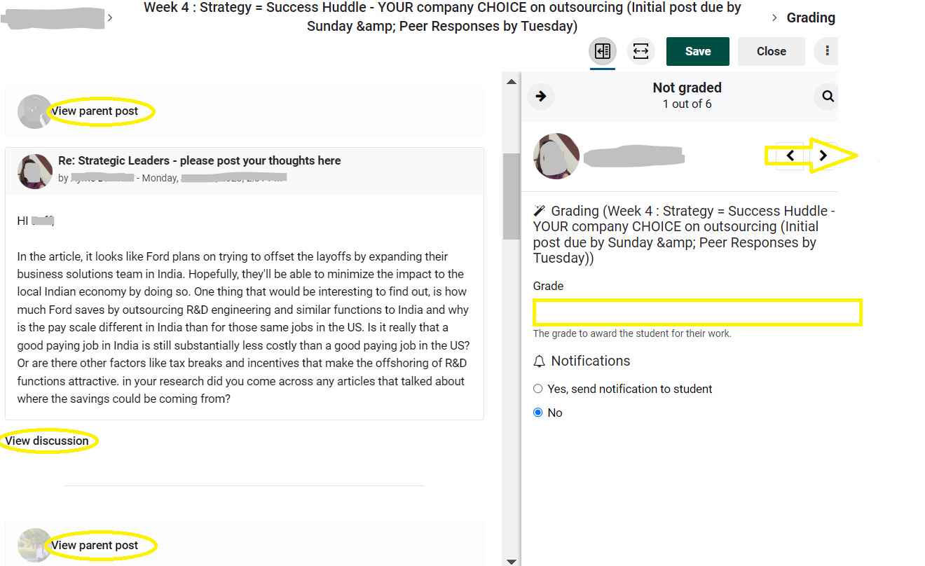 - Use the arrows at the top of the screen to Navigate to the next student and repeat!