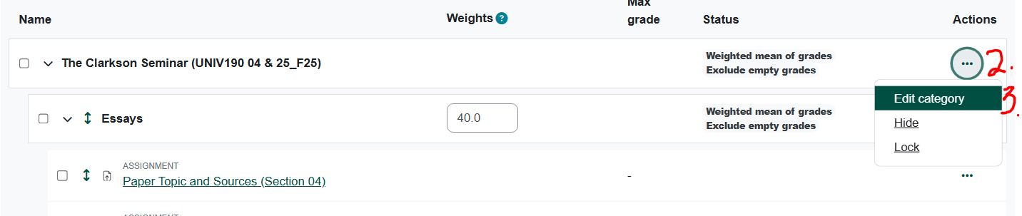 schemes, such as making a final exam worth 50% of the grade, even if it has the same number of points as a smaller assignment. Weights must match the grading strategy outlined in the course syllabus, ensuring the final grade accurately reflects the instructor's intended weight for different types of work.