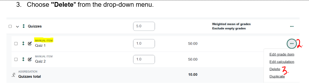 Moodle: How to Delete a Manually Added Gradebook Item