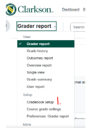 - On the left side of the page, click Grade Report-scroll down to Gradebook set up