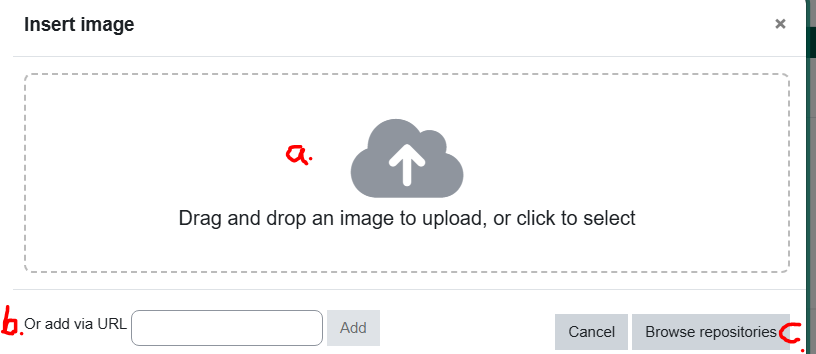 4. Fill in any information about the image if prompted, give the image a descriptive name. (Or if the image is not important to the content of the course add double quotes "")*