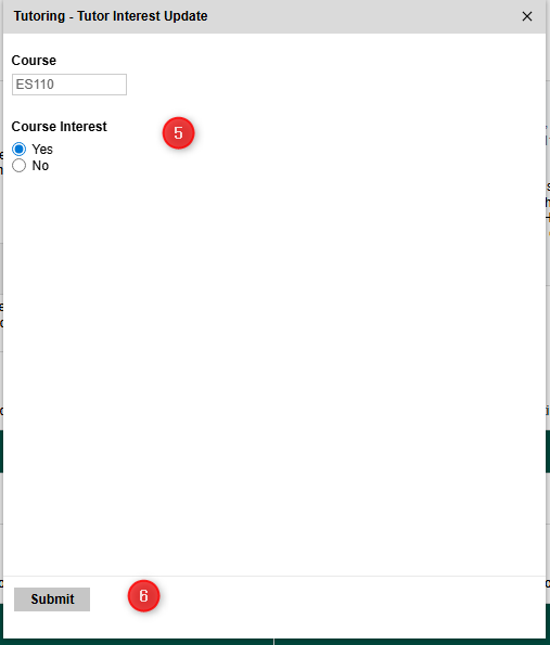 - To update your interest in tutoring that course, click the Edit button next to it. This answer carries over semester to semester, and you only need to update your answer if you have changed your interest as time goes on.