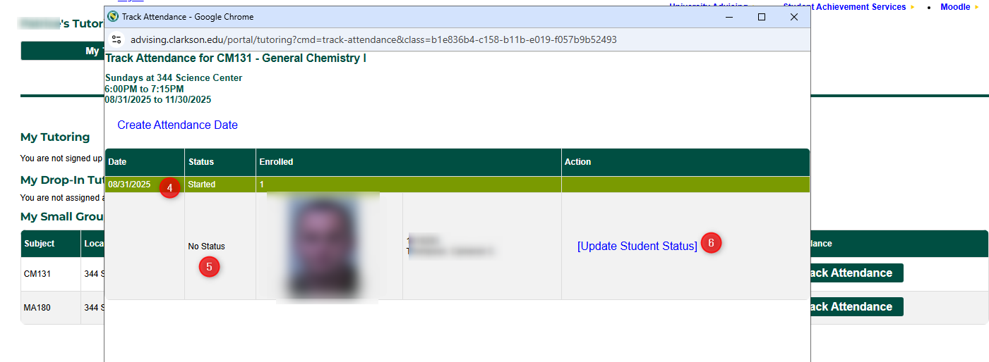 - If you had enrolled students in your tutoring session during the date you are entering, they will show up below.